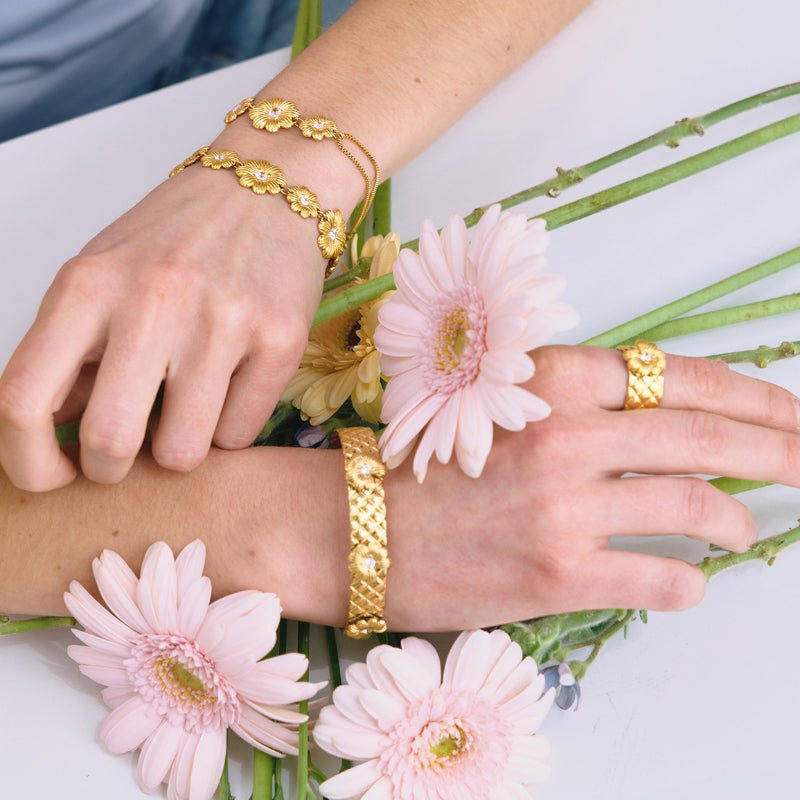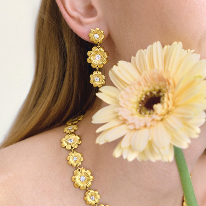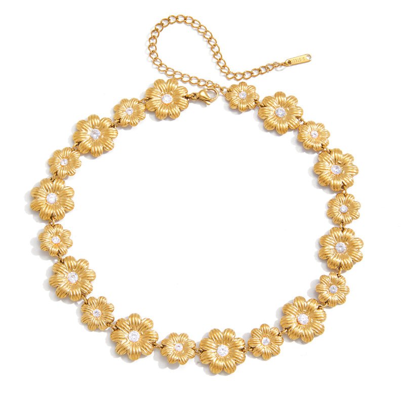 #This daisy flower necklace features a fresh and delicate design with light luxury high-grade texture. Made of high-quality titanium steel and stainless steel, it is waterproof, fade-resistant, hypoallergenic and comfortable for daily wear. Simple, elegant and fashionable, it easily matches any outfit for daily life, dates and parties. A popular and stylish jewelry for women, ideal for cross-border e-commerce and wholesale.