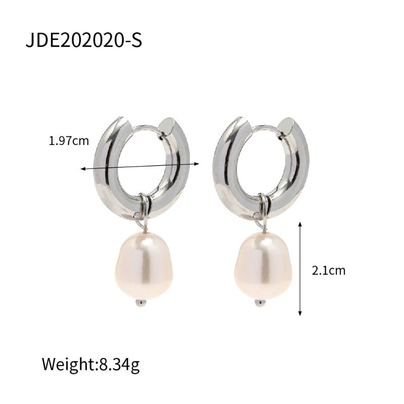 #These women's hoop earrings are made of high-quality stainless steel with a stylish steel finish and natural freshwater pearl pendants. They feature a popular European and American INS design, simple yet elegant, non-fading, waterproof, hypoallergenic and comfortable for daily wear. The lightweight hoop with pearl pendant is versatile for daily, party, date and holiday wear. Perfect as a gift and a best-selling item for cross-border e-commerce, wholesale and independent stores.