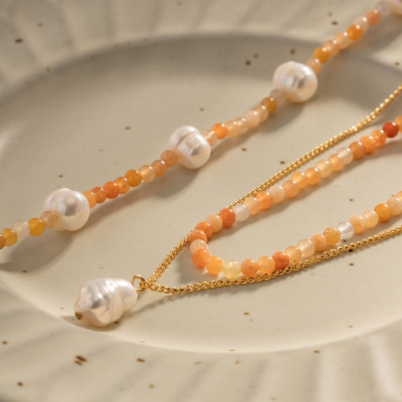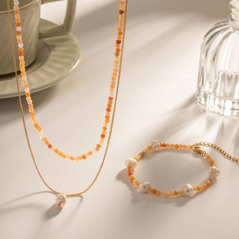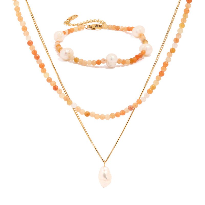 #This INS style jewelry set includes 18K gold plated Baroque pendant natural stone necklace and matching non fading bracelet. Made of high quality titanium steel and stainless steel it is waterproof durable and comfortable for daily wear. With elegant minimalist design and premium texture it is versatile for all occasions. Perfect for dating parties daily matching and gift giving. Ideal for fashion jewelry wholesale boutiques and cross border e commerce bestsellers.
