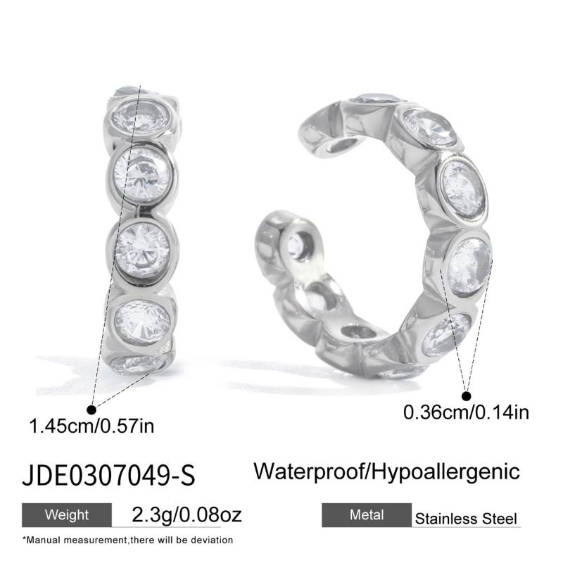 #These zircon stud earrings and ear cuffs feature minimalist high grade and light luxury style. Made of premium titanium steel and stainless steel, they are waterproof, fade-resistant, hypoallergenic and comfortable for daily wear. Inlaid with shiny zircon, delicate and fashionable, perfect for daily matching, dating, parties and gifting. A trendy and versatile accessory ideal for cross-border e-commerce and wholesale.