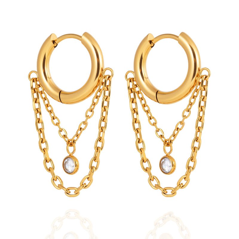 #These exaggerated zircon tassel hoop earrings feature a stylish and high-grade design. Made of premium titanium steel and stainless steel, they are waterproof, fade-resistant, hypoallergenic and comfortable for daily wear. Eye-catching and glamorous, perfect for parties, dates, daily wear and gifting. A popular fashion accessory for women, ideal for cross-border e-commerce and wholesale.