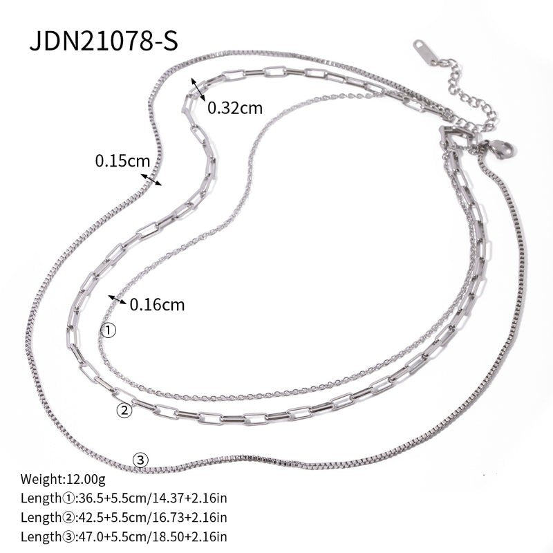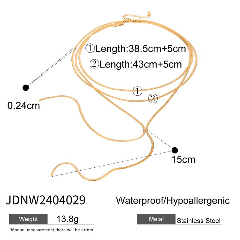 #This three layer stacked titanium steel necklace shows light luxury and high end temperament. Made of quality stainless steel, it is non fading, waterproof and durable. Simple yet fashionable clavicle chain is perfect for daily wear, dating, parties and all outfits. Ideal for women fashion jewelry, gifts, wholesale, boutiques and cross border e commerce bestseller collections.