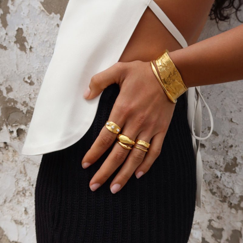 #This women's faux pearl ring is made of high-quality titanium steel and stainless steel with a niche light luxury and premium design. It is non-fading waterproof durable and comfortable for daily wear. The simple and elegant style matches various outfits for daily use dating parties and gift giving. A hot-selling item for cross-border e-commerce ideal for fashion jewelry wholesale independent stations and bestseller collections.