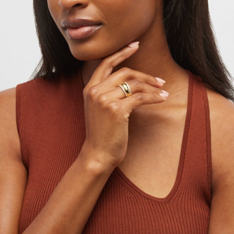 #This internet celebrity same style ring is crafted of 18K gold plated stainless steel with shiny inlaid crystal. Simple niche design shows high-end texture and fashionable look. Unisex style fits both men and women comfortable for daily wear. Durable color retention great for daily matching dating parties and gifts. Ideal for jewelry wholesale boutique and cross-border e-commerce bestseller collections.