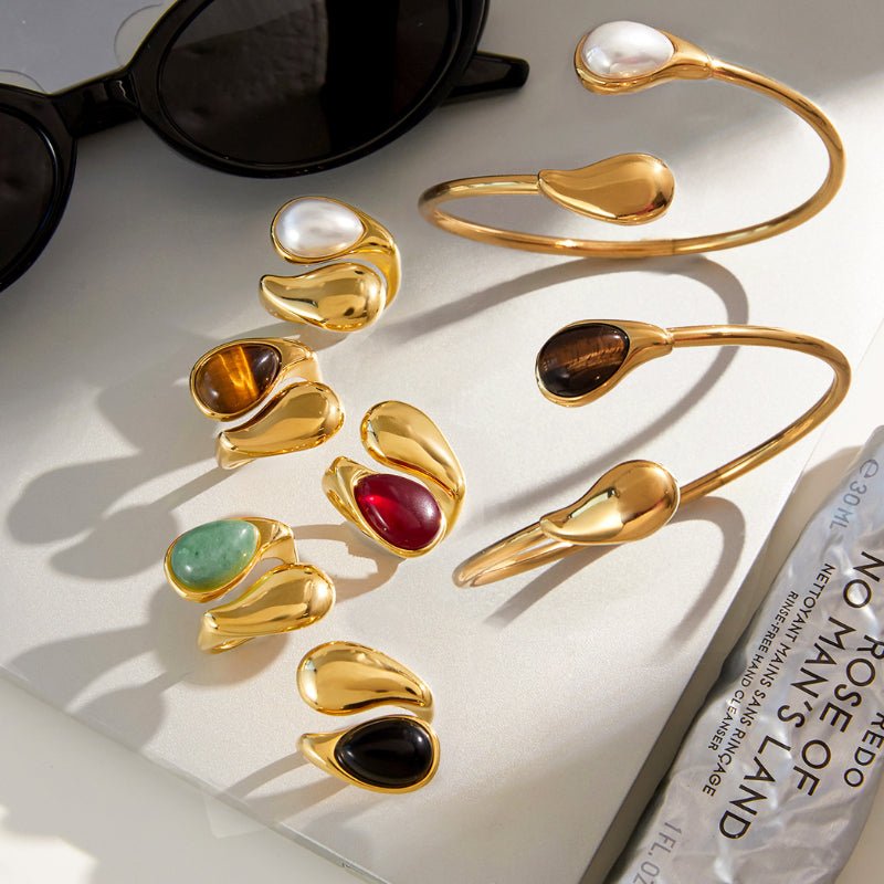 #This jewelry set includes natural stone titanium steel ring and matching premium bracelet. Designed with light luxury and high end texture, perfect for modern women. Made of high-quality stainless steel, it is non-fading, waterproof, durable and comfortable for daily wear. The natural stone decor adds unique elegance, great for daily matching, dating, parties and gifting. Ideal for women fashion jewelry, wholesale, boutiques and cross-border e-commerce bestseller collections.