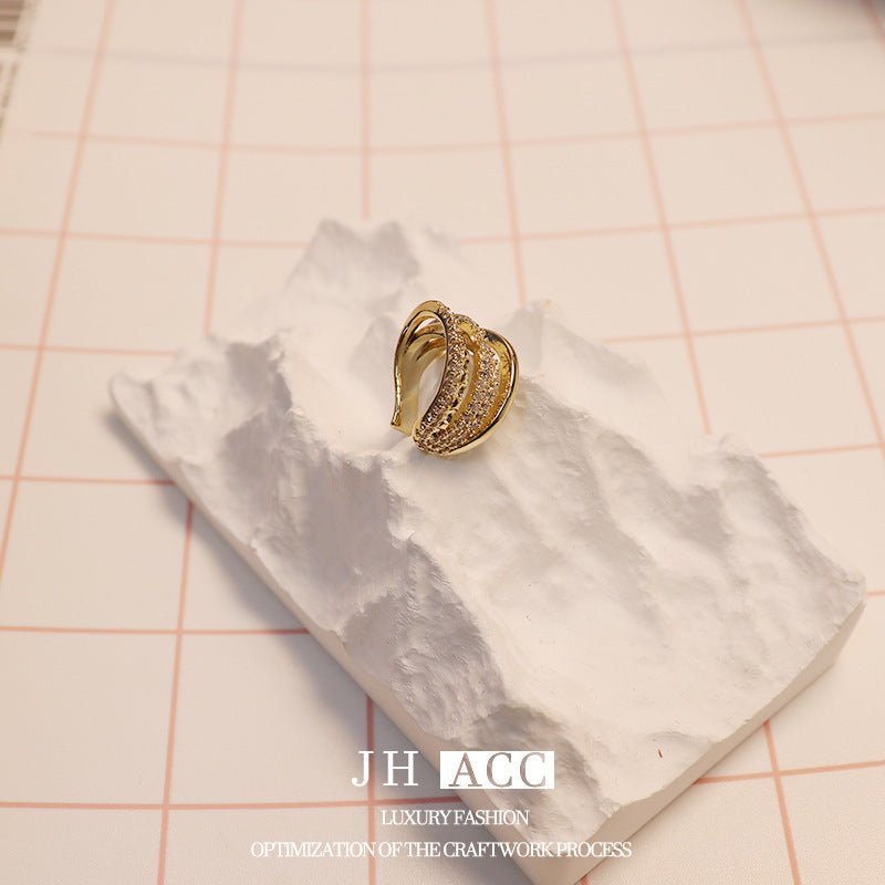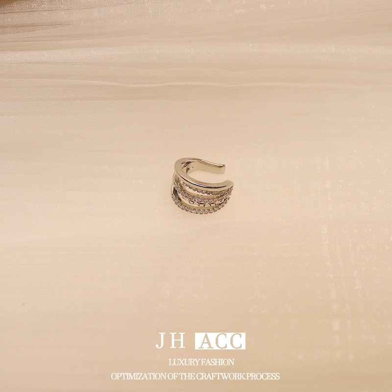 Real Gold Plated French Shiny Zircon INS Double Layer Ear Cuff Luxury Design Ear Clip No Piercing For Women