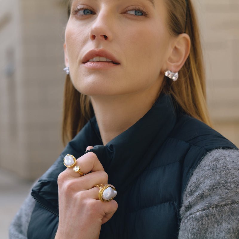 #This women's ring is made of high-quality titanium steel and stainless steel with resin pearls and 18K gold plating. It features a niche and premium design with elegant texture. The ring is non-fading, waterproof, durable and comfortable for daily wear. Perfect for daily matching, dating, parties and gift giving. Ideal for fashion jewelry wholesale, boutiques and cross-border e-commerce bestseller collections.