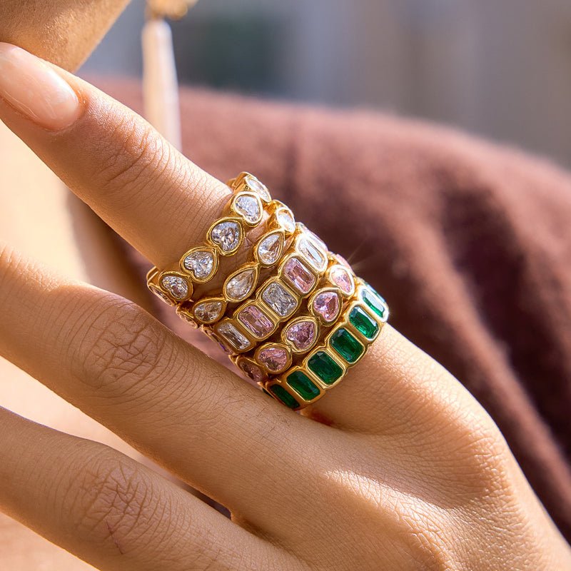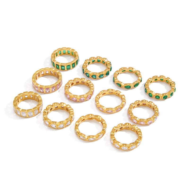 #This women's zircon ring is made of high-quality titanium steel and stainless steel with 18K gold plating. It has a minimalist and high-grade design, inlaid with shiny zircon for an elegant look. Waterproof, fade-resistant, hypoallergenic and comfortable for daily wear. Perfect for parties, dates, daily wear and gifting. A fashionable and delicate accessory for women, ideal for cross-border e-commerce and wholesale.