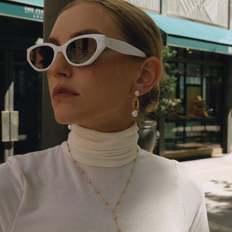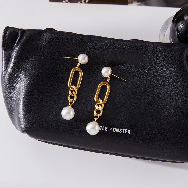 #These women's dangle stud earrings are made of high-quality titanium steel and stainless steel with delicate faux pearl decor. They feature a niche and premium design, non-fading, waterproof, durable and comfortable for daily wear. The elegant dangling style adds a stylish touch to any outfit, perfect for daily matching, dating, parties and gift giving. Ideal for fashion jewelry wholesale, independent stations and cross-border e-commerce bestsellers.
