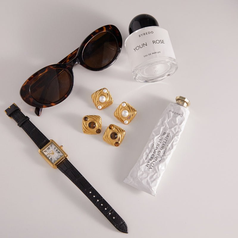 #These women's stud earrings are made of high-quality titanium steel and stainless steel with natural tiger eye stone and elegant faux pearls. They feature a light luxury and premium design with unique texture. The earrings are non-fading, waterproof, durable and comfortable for daily wear. Perfect for daily matching, dating, parties and gift giving. Ideal for fashion jewelry wholesale, independent stations and cross-border e-commerce bestsellers.