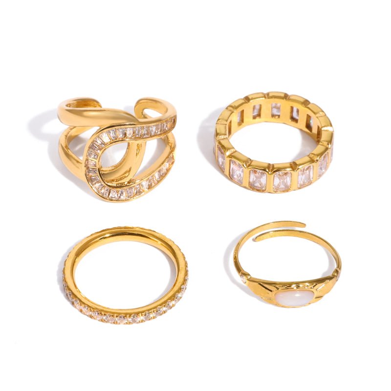 #This women's ring is inlaid with shiny zircon, featuring a minimalist and high-grade design. Made of premium titanium steel and stainless steel with 18K gold plating, it is waterproof, fade-resistant, hypoallergenic and comfortable for daily wear. Elegant and stylish, it is perfect for dating, parties, daily wear and gifting. A popular cross-border fashion jewelry, ideal for e-commerce and wholesale.